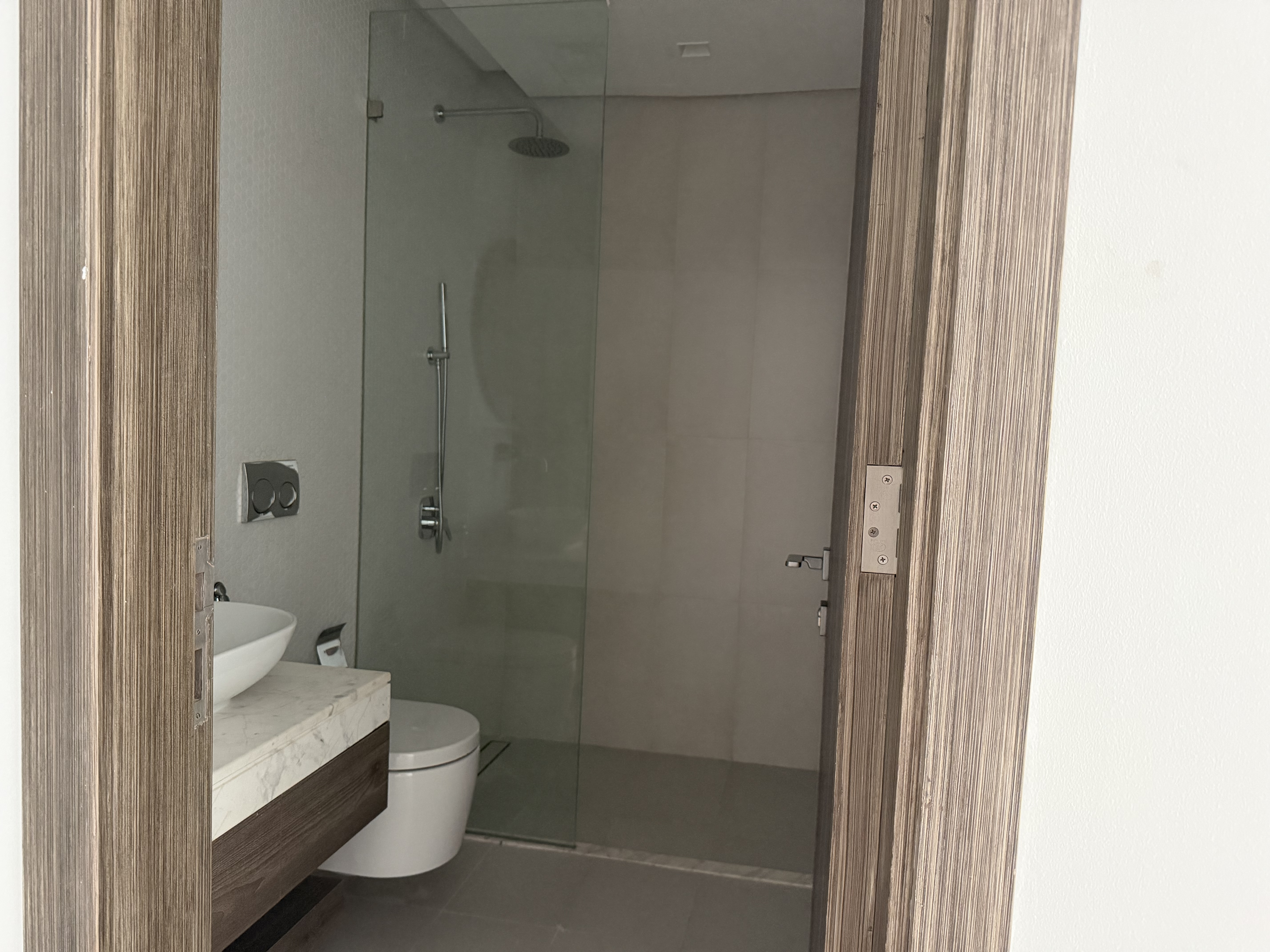 The apartment consists of three generously sized bedrooms with built-in wardrobes, four modern bathrooms with high-quality fittings, and a separate maid’s room with its own bathroom. The kitchen is fully fitted with sleek cabinetry and ample storage space, ideal for everyday living and entertaining.